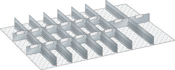 Lista Einteilungsmaterial-Set, Einsatzkästen, Fronthöhe 50 mm, 54 x 36 E, Nutzmaß B 918 x T 612 mm, 80.451.000