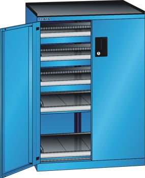 Schubladenschrank Flügeltüren 717x600x1020 RAL 5012 Lista 36x27E 79.414.010