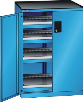 Schubladenschrank Flügeltüren 717x600x1020 RAL 5012 Lista 36x27E 79.416.010