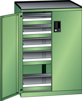 Schubladenschrank Flügeltüren 717x600x1020 RAL 6011 Lista 36x27E 79.421.030