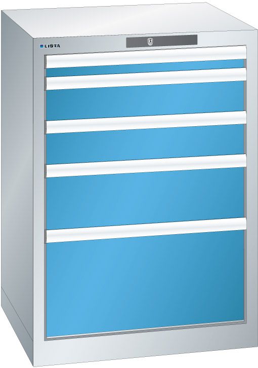 Schubladenschr 5 Schubl. 564x572x800 Korp.RAL 7035 Front RAL 5012 Lista 27x27E 78.882.514