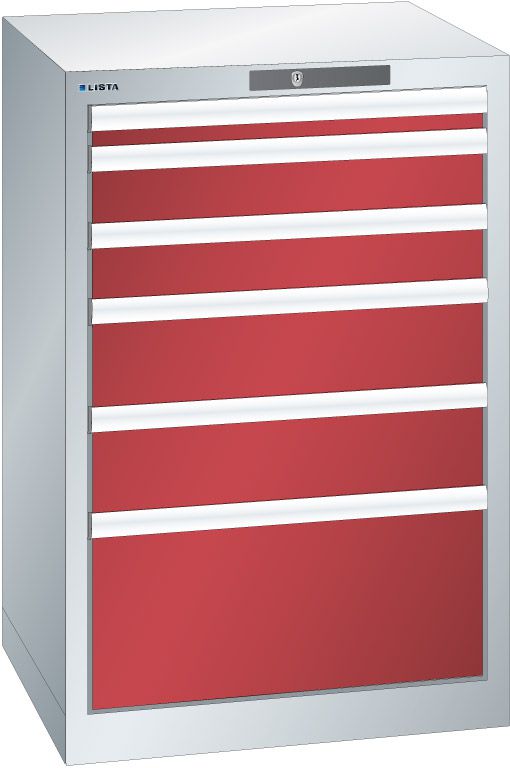 Schubladenschr 6 Schubl. 564x572x850 Korp.RAL 7035 Front RAL 3003 Lista 27x27E 78.954.512