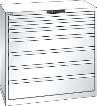 Schubladenschrank 7 Schubladen 1023x572x1000 RAL 9010 Lista 54x27E 78.761.110