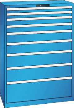 Schubladenschrank 9 Schubladen 1023x572x1450 RAL 5012 Lista 54x27E 78.768.010